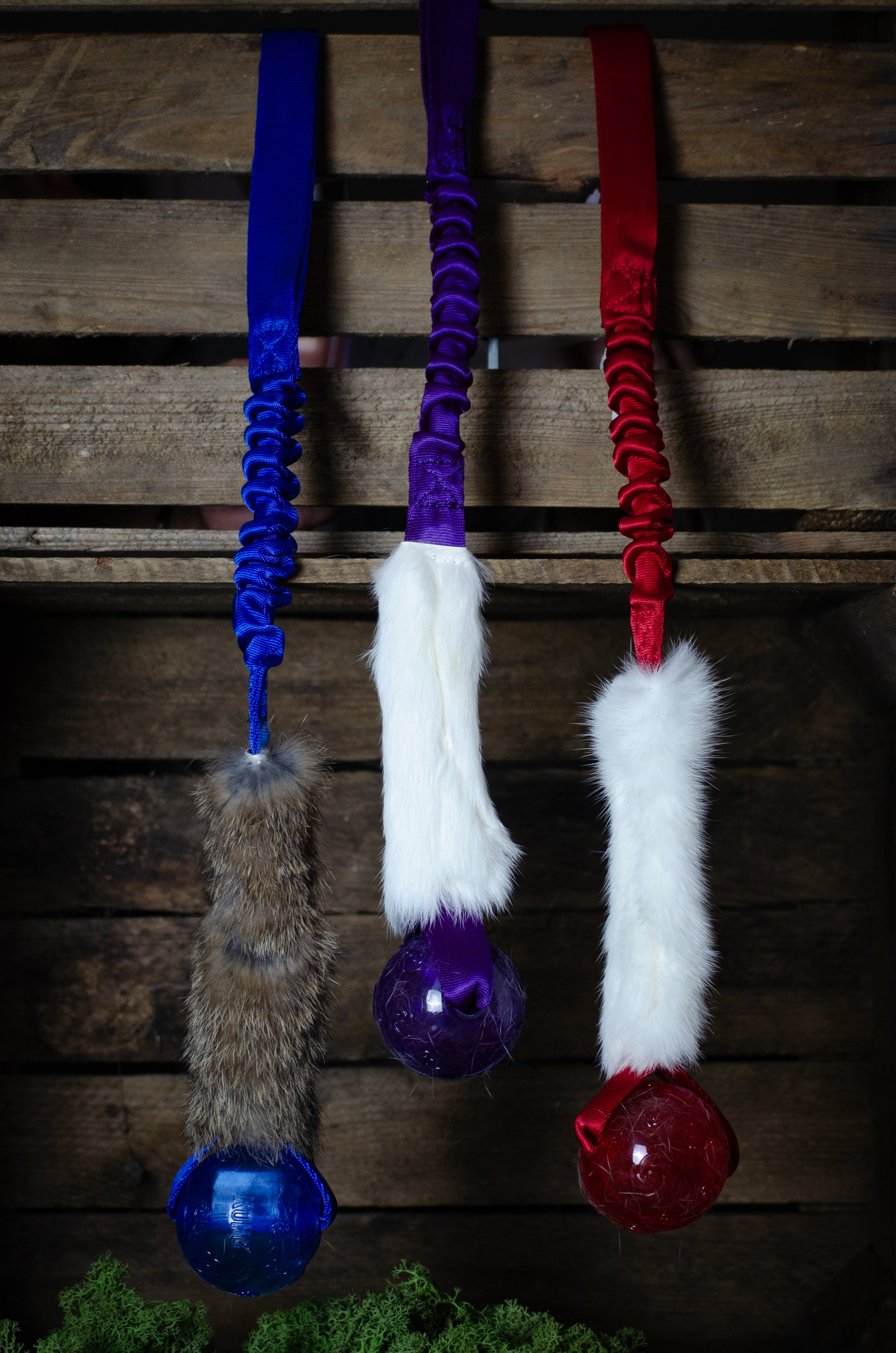 KONG-bollen ger leksaken extra vikt, vilket gör den lätt att kasta som belöningsapport, samtidigt som pipet förstärker hundens motivation. Pälsen triggar jaktinstinkten, och bungee-handtaget gör kampstunderna mer skonsamma för både hund och förare.