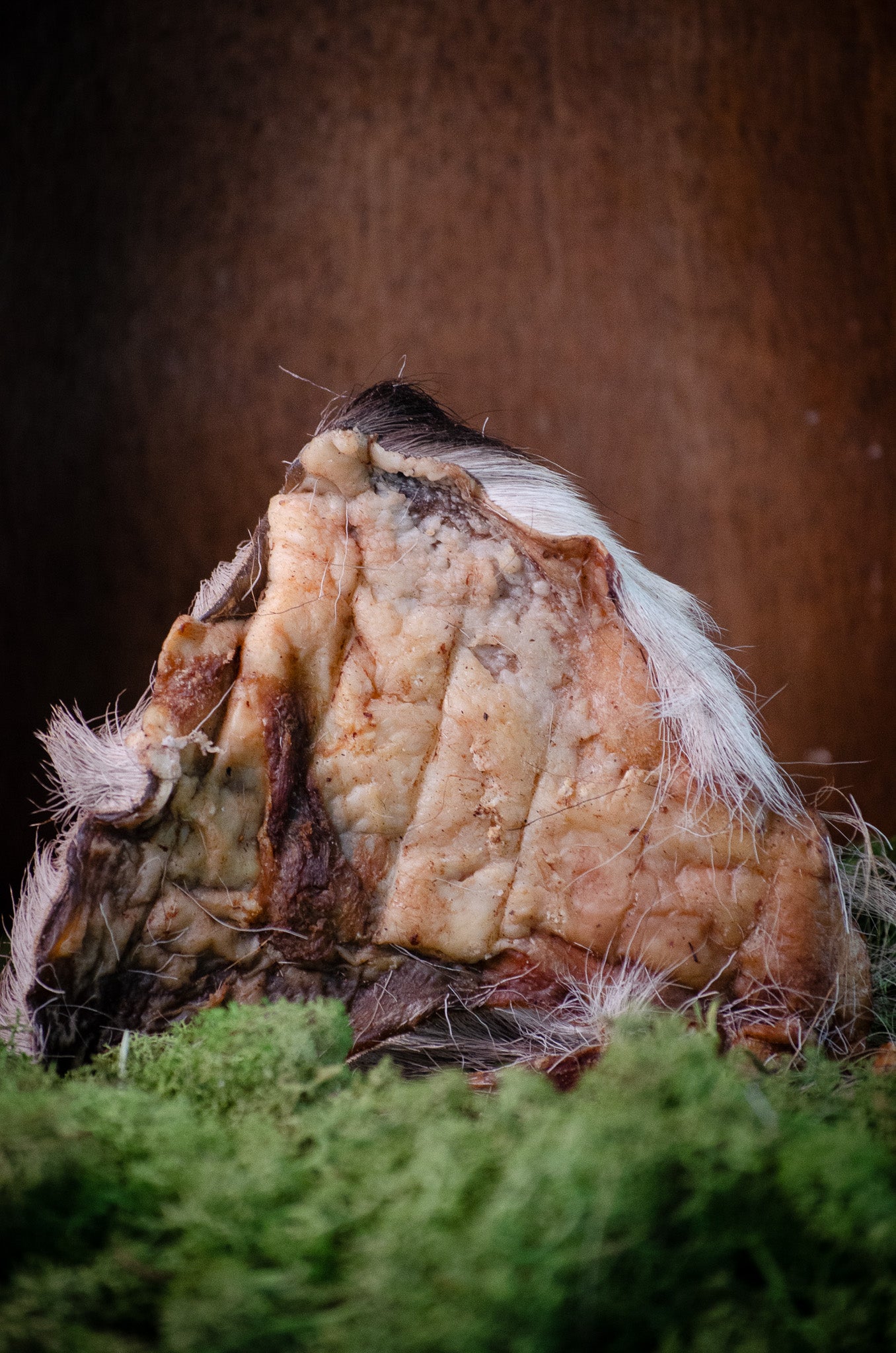 Hjortskinnet kan användas på flera sätt, lägg det i matskålen för att variera måltiden, knyt ett snöre runt för jaktlek eller använd det som doftspår för jakt, och miljöberikning.