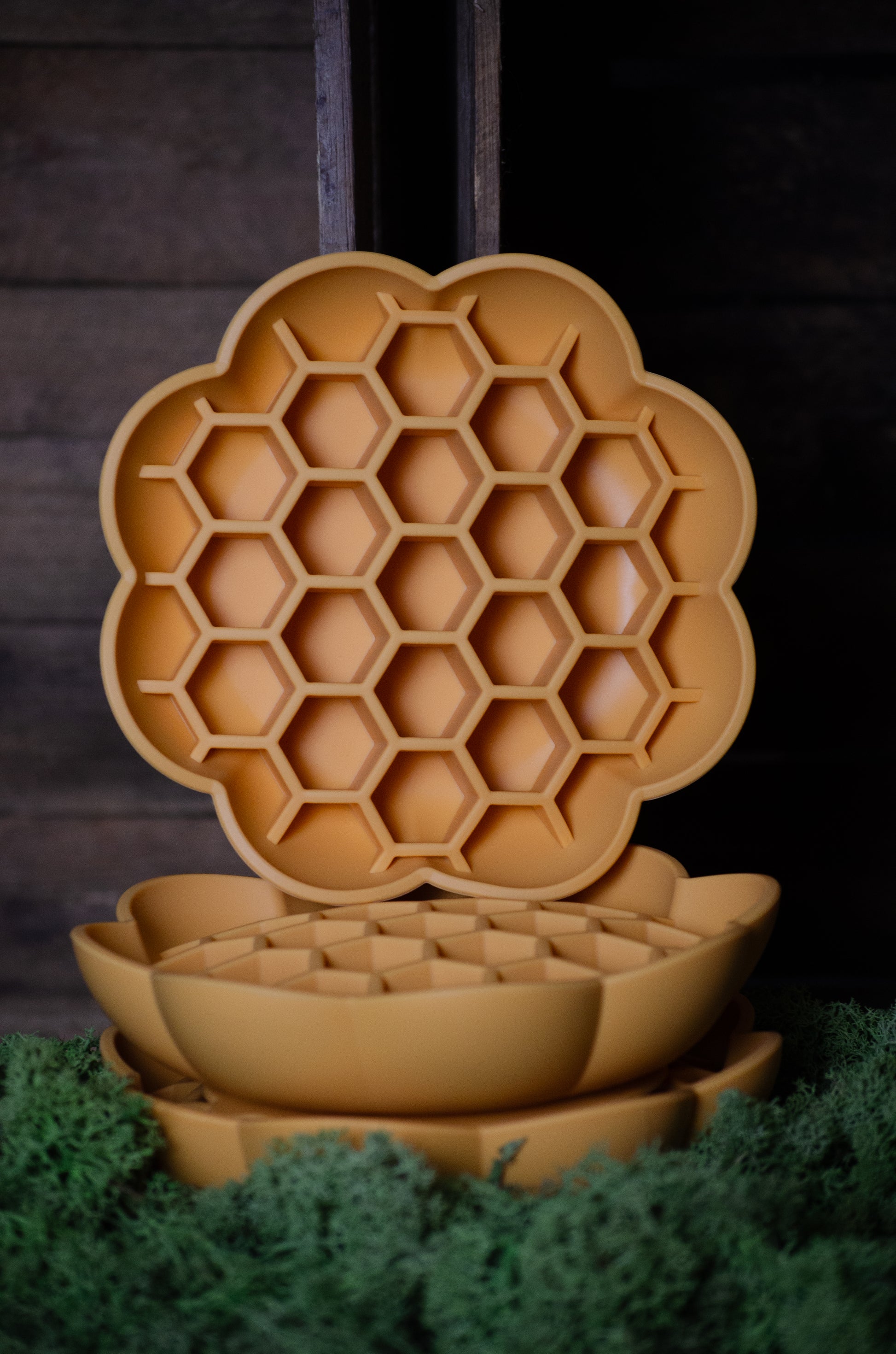 Behöver din hund sakta ner vid måltiden? Då är Sunflower skålen den perfekta lösningen. Med sin solrosinspirerade design i slitstarkt silikon gör denna slowfeeder varje måltid både roligare och lugnare. De djupa hexagonfacken fördelar fodret på ett naturligt sätt och hjälper din hund att äta långsammare – något som främjar både välmående och matsmältning.